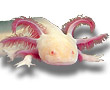 The second kind of albino I will mention is the axanthic albino. It has normal pigment cell migration but is homozygous for the albino gene and the axanthic gene (a/a and ax/ax), meaning it lacks melanophores, xanthophores and iridophores. It is almost white, but becomes yellow with age due to the accumulation of riboflavins from its diet. Here's a picture of one of the former Indiana University Axolotl Colony's albino axanthic specimens
